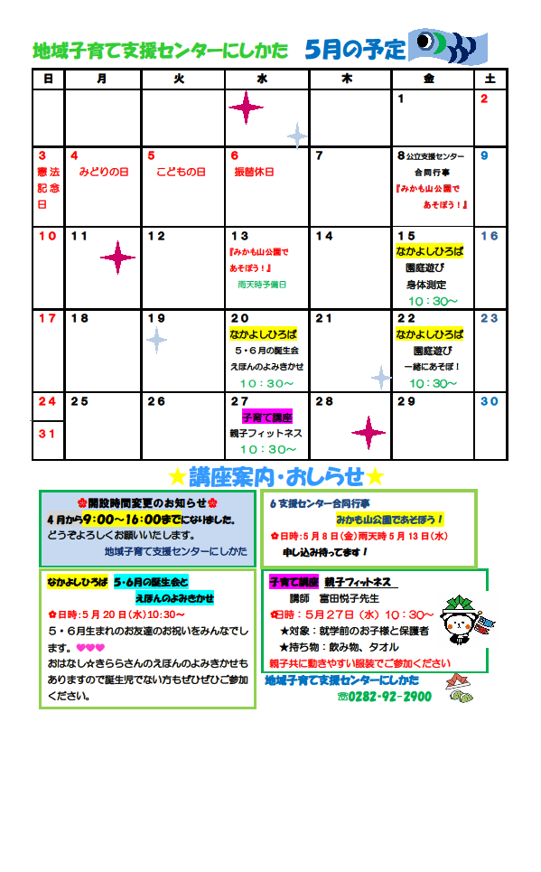 詳しくは【5月の予定表】をご覧ください。