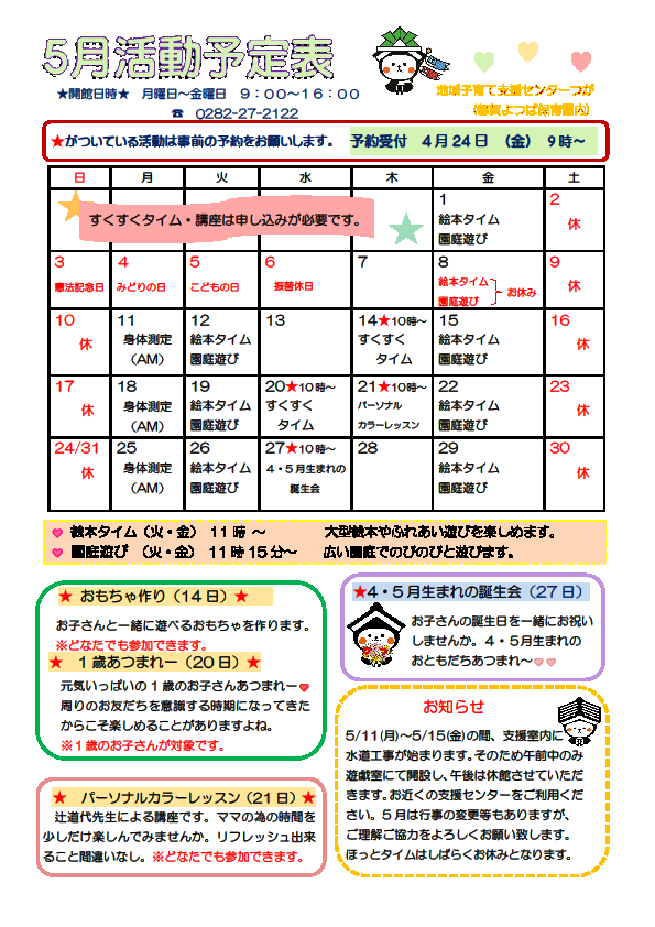 詳しくは【5月のおたより】と【申し込み情報】をご覧ください。